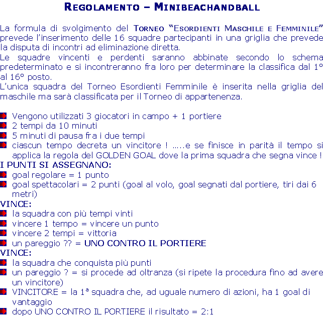 “ESORDIENTI MINI Beach Handball |