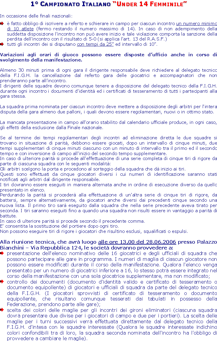 | Home 1° Campionato Italiano Under 14F-15M (Regolamenti e Calendari) | |