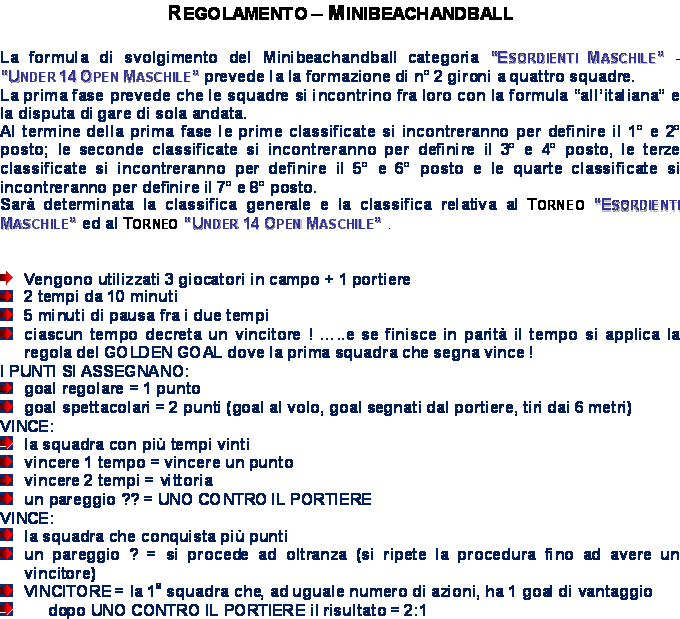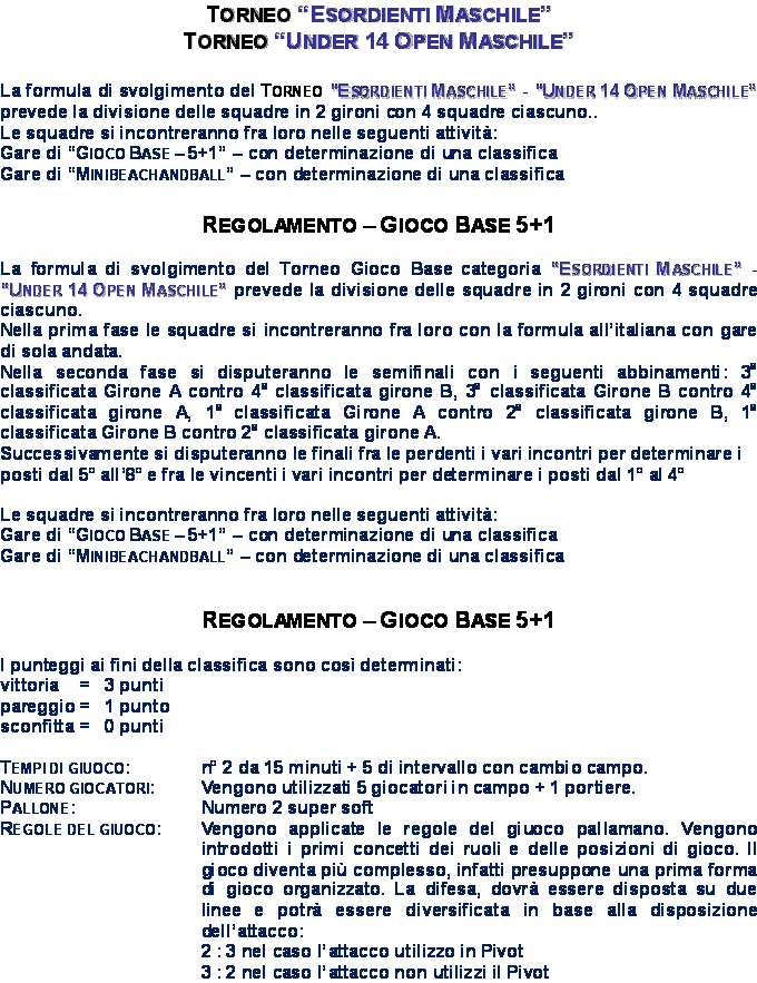 ESORDIENTI MASCHILE - UNDER 14 OPEN MASCHILE |